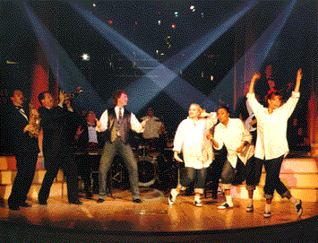 "Cavalcade of Stars" is a legendary Las Vegas show group, an elegant ensemble for cocktails or dinner, and also an exciting, interactive dance band. During dance sets, the horn section delivers percussion instruments such as tambourines, shakers, etc. to the attendees. When a dance set is performed, total interaction is the key. The audience is enticed not only to the dance floor, but to the performance stage as well.